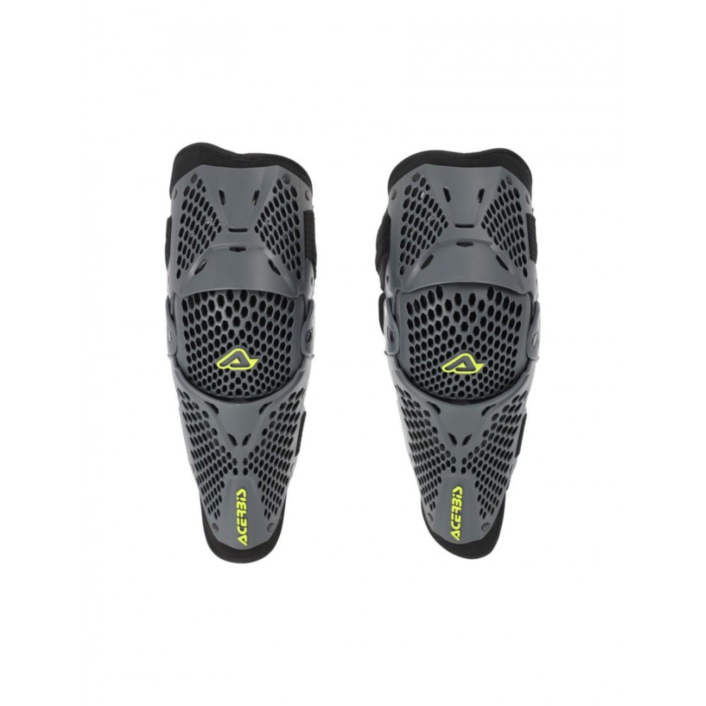Το εξωτερικό κέλυφος, σε συνδυασμό με το διάτρητο εσωτερικό υλικό επένδυσης, εξασφαλίζει σταθερότητα και αερισμό. Ο μηχανισμός διπλής άρθρωσης και η ημι-σκληρή πλαστική κατασκευή έχουν σχεδιαστεί για να πληρούν την πιστοποίηση Επιπέδου 2, προσφέροντας αντοχή, άνεση και προσαρμοστικότητα στην κίνηση του γόνατου κατά την οδήγηση. Επιπλέον αφαιρούμενη επένδυση, ασφαλισμένη με βέλκρο, επιτρέπει την τέλεια ρύθμιση του επιγονατίου στο γόνατο του αναβάτη. Εξαιρετικά διαπνεόμενες λωρίδες από νεοπρένιο εξασφαλίζουν τη σωστή τοποθέτηση του επιγονατίου και παρέχουν άριστο αερισμό. Ελαστικές λωρίδες επιτρέπουν την οπτιμαλική τάση, ασφαλίζοντας σταθερά την προστασία στο γόνατο του αναβάτη. Αυτό το ρυθμιζόμενο σύστημα επιτρέπει προσαρμογή βάσει άνεσης και προτιμήσεων ασφαλείας χωρίς να μειώνεται η αποτελεσματικότητα. Περιλαμβάνονται και ελαστικές κάλτσες, σχεδιασμένες για να φοριούνται κάτω από το επιγονάτιο για την αποφυγή τριβής και ερεθισμού. Κατασκευασμένες από ελαστικό υλικό με διαπνέον ένθετο πίσω μέρος, παρέχουν επιπλέον άνεση και αερισμό.