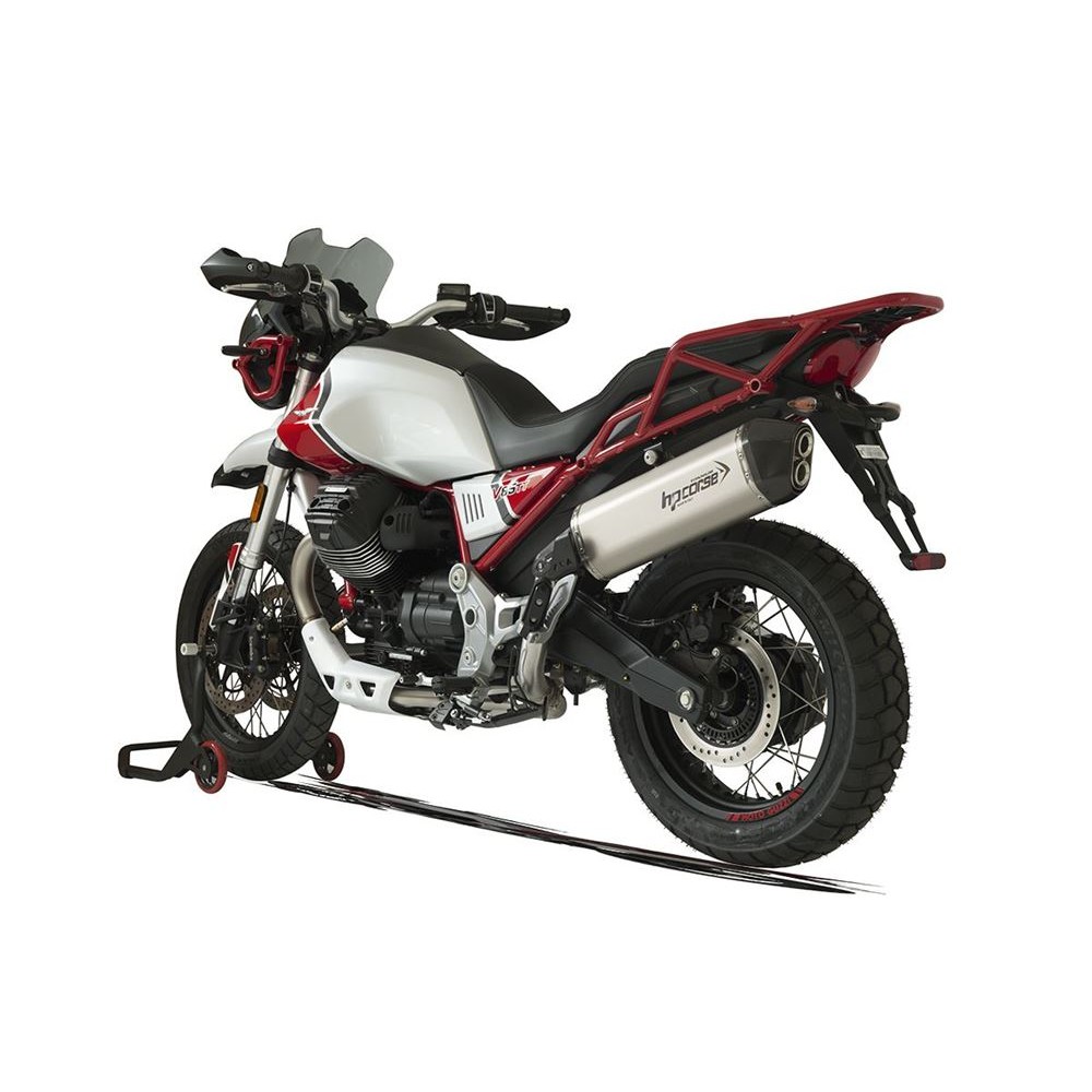 Μια μοτοσικλέτα που γεννήθηκε για να ικανοποιήσει τα πνεύματα που αναζητούν την περιπέτεια. Η GUZZI V85 TT παραπέμπει αμέσως στην ατμόσφαιρα των μεγάλων «μαραθωνίων» όπως το Ντακάρ και σε όλους εκείνους τους αγώνες που έχουν γράψει την ιστορία της μοτοσικλέτας «OFF», προσφέροντας μια τέλεια σύνθεση μεταξύ της αρχαίας γοητείας που δίνει η μάρκα Eagle και των δυναμικών γραμμών ενός «μοντέρνου κλασικού». Η GUZZI V85 TT είναι η ιδανική μοτοσικλέτα για κάθε είδους ταξίδι και για αυτόν τον λόγο έχει συγκινηθεί από μια εξαιρετική επιτυχία στο κοινό. Η HP CORSE έχει αφιερώσει μία από τις τελευταίες δημιουργίες της σε αυτόν τον υπέροχο εκπρόσωπο του «made in Italy» και στον εγκάρσιο κινητήρα V στις 90° και 853 cc, την εξάτμιση SPS CARBON ικανή όσο καμία άλλη να ανταποκριθεί στο πνεύμα και τον χαρακτήρα αυτής της νέας Guzzi. Η SPS CARBON παρουσιάζει ένα έργο που έχει βρεθεί στο επίκεντρο πολλών ωρών οδήγησης και χιλιάδων χιλιομέτρων σε όλα τα είδη εδάφους και δρόμων. Μια εξάτμιση ικανή να εγγυηθεί αντοχή και αξιοπιστία, καθώς και εξαιρετική ροπή και ανώτερη απόδοση, ιδιαίτερα σε χαμηλές και μεσαίες ταχύτητες. Η SPS CARBON αλλάζει το στυλ της V85 TT, κάνοντάς την πιο αεροδυναμική στο πίσω μέρος, καθώς και ελαφρύτερη και ικανή να ξεφεύγει ακόμα καλύτερα ανάμεσα σε καμπύλες, αλλαγές κατεύθυνσης και φουρκέτες. Διατίθεται σε τρία διαφορετικά υλικά: τιτάνιο, ανοξείδωτο ατσάλι με μαύρη κεραμική επίστρωση, σατινέ ανοξείδωτο ατσάλι.