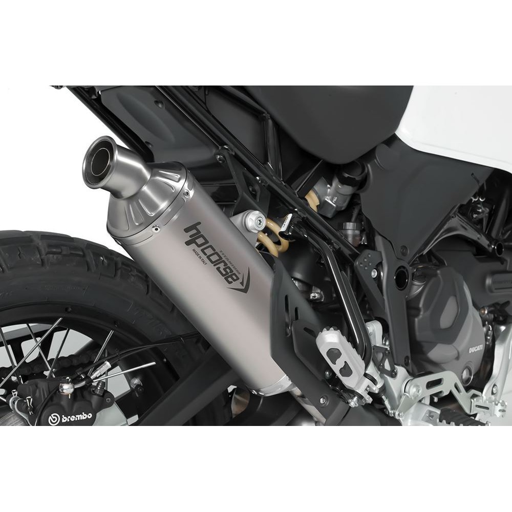 Με την πολυαναμενόμενη άφιξη του DESERTX, το σημείο αναφοράς για τις μοτοσικλέτες περιπέτειας έχει τεθεί υψηλότερα από ποτέ. Σε ευθυγράμμιση με αυτό το νέο πρότυπο, η HP Corse παρουσιάζει με υπερηφάνεια το SP-1 SHORT, το τέλειο συμπλήρωμα για την εμβληματική μοτοσικλέτα Borgo Panigale. Σχεδιασμένο με γνώμονα το περιπετειώδες πνεύμα, αυτό το σύστημα εξάτμισης όχι μόνο βελτιώνει την απόδοση, αλλά αποτίει και φόρο τιμής στην πλούσια κληρονομιά μας από το Ντακάρ. Στην καρδιά του SP-1 SHORT βρίσκεται το οβάλ σχήμα του, σφηνωμένο καλλιτεχνικά ανάμεσα σε δύο εξαιρετικά ελαφριά κωνικά μαξιλαράκια. Αυτό το εντυπωσιακό στοιχείο σχεδιασμού όχι μόνο ενισχύει την αισθητική, αλλά συμβάλλει και στη συνολική λειτουργικότητα της εξάτμισης. Έχει δοθεί σημαντική προσοχή ακόμη και στις πιο μικρές λεπτομέρειες, συμπεριλαμβανομένου ενός ακροφυσίου εξόδου υπό γωνία για βέλτιστη εκροή καυσαερίων. Το κομψό δοχείο τιτανίου 300 mm είναι διακοσμημένο με ένα λογότυπο HP Corse χαραγμένο με λέιζερ, τονίζοντας περαιτέρω την υψηλής ποιότητας κατασκευή του. Η ευελιξία εγκατάστασης είναι ένα βασικό χαρακτηριστικό του SP-1 SHORT, χάρη στο σύστημα γρήγορης αποδέσμευσης. Αυτό επιτρέπει επιλογές τοποθέτησης τόσο σε υψηλή όσο και σε χαμηλή θέση στον καταλύτη OEM ή στο 2-1 DECAT PIPE, ένα αγωνιστικό εξάρτημα σχεδιασμένο για όσους αναζητούν απόδοση πέρα από τα όρια. Επιπλέον, το SP-1 SHORT πληροί τα πρότυπα συμμόρφωσης Euro 5, διασφαλίζοντας ότι οι αναβάτες μπορούν να απολαύσουν τις τεράστιες δυνατότητές του χωρίς συμβιβασμούς στις περιβαλλοντικές παραμέτρους. Διαθέσιμο σε φινίρισμα φυσικού τιτανίου και ματ μαύρου τιτανίου, αυτό το σύστημα εξάτμισης ενσωματώνεται άψογα με την τολμηρή αισθητική του DESERTX. Το HP Corse SP-1 SHORT συμβολίζει τον τέλειο συνδυασμό απόδοσης και στυλ, ειδικά σχεδιασμένο για απαιτητικούς και περιπετειώδεις αναβάτες. Ζήστε την εξαιρετική κατασκευή και την καινοτόμο μηχανική που χαρακτηρίζει το HP Corse και ανεβάστε την εμπειρία οδήγησης σε νέα ύψη.